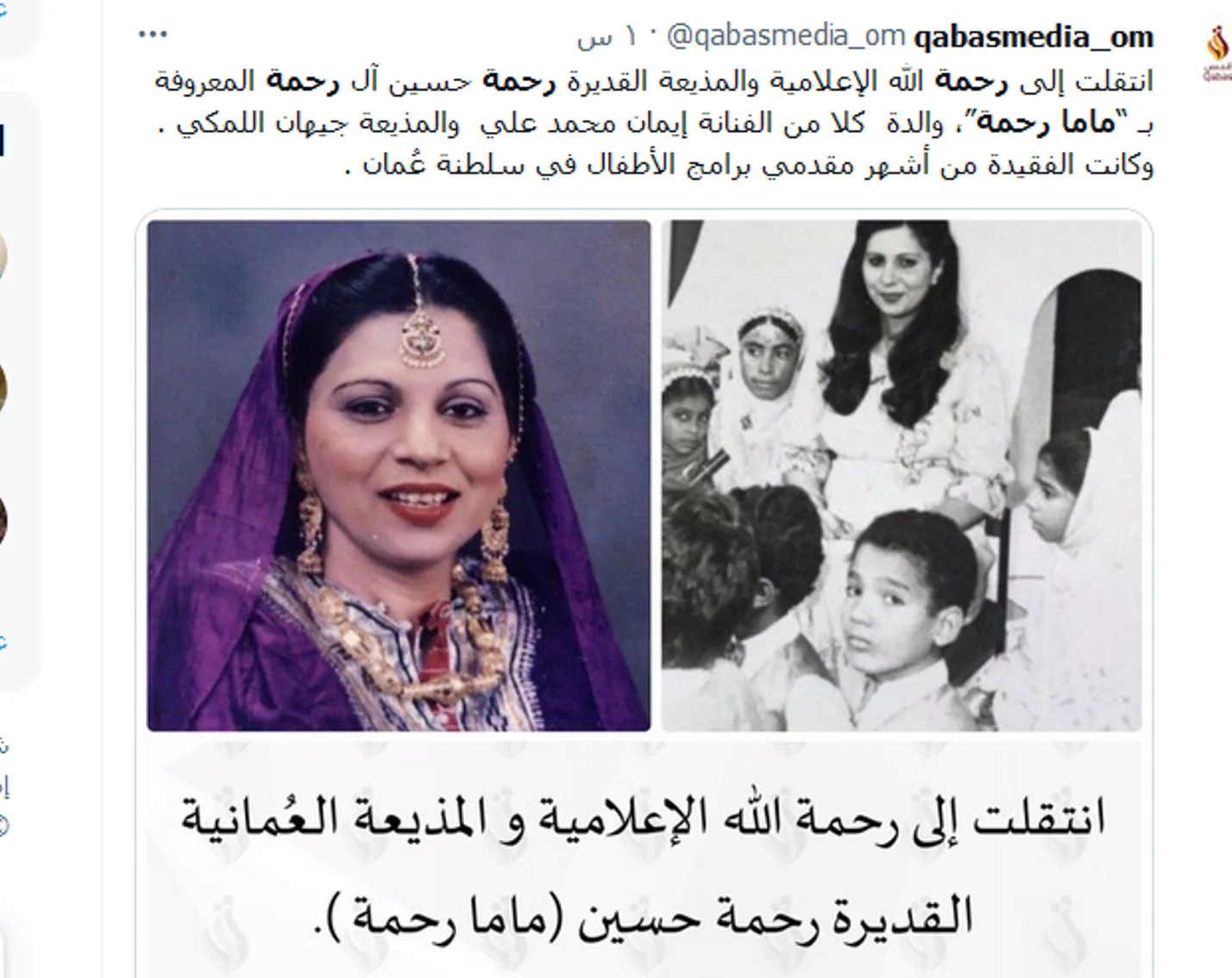 رحمة حسين الإعلامية العمانية في ذمة الله.. الشهيرة بـ ماما رحمة