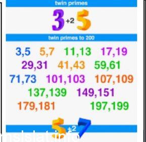 العددان هما توأم أولي، عندما يكون الاختلاف بين الرقمين اثنين ، فإن الرقم الأولي هو الرقم المقسم فقط على نفسه…