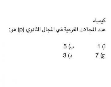 عدد المجالات الفرعية في المجال الثانوي p، تحتوي الإلكترونات في كل عنصر على ذرة أو جزيء حيث توجد الإلكترونات في…