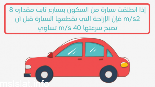 إذا انطلقت سيارة من السكون بتسارع ثابت مقداره 8 m/s2 فإن الإزاحة التي تقطعها السيارة