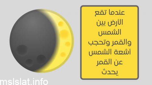 عندما تقع الأرض بين الشمس والقمر وتحجب أشعة الشمس عن القمر يحدث