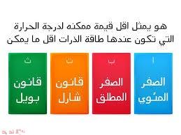 أقل قيمة ممكنة لدرجة الحرارة التي تكون عندها طاقة الذرات أقل مايمكن هي الصفر