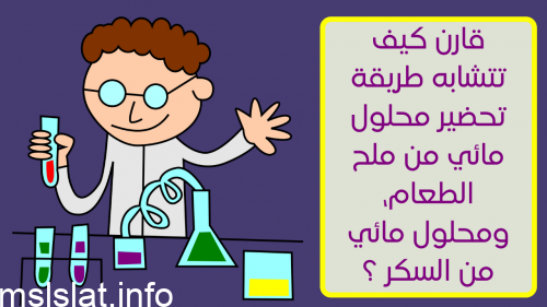 قارن كيف تتشابه طريقة تحضير محلول مائي من ملح الطعام مع محلول مائي للسكر؟