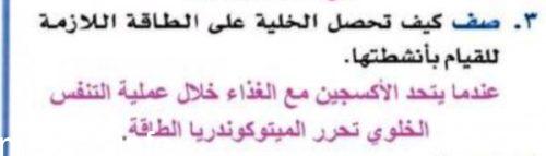 صف كيف تحصل الخلية على الطاقة اللازمة للقيام بانشطتها