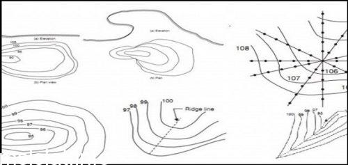 يتم رسم خطوط الكنتور على الخرائط الطبوغرافية ، التي تمثل سطح الأرض ، وتظهر مواقع الارتفاعات والانحدارات على سطح الأرض ، والخط الكنتوري المتصل هو الارتفاعات ، وتمثل الخطوط الكنتورية: