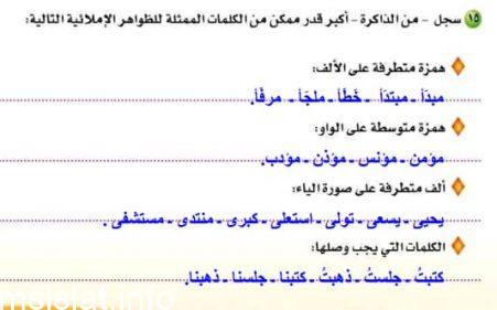 سجل من الذاكرة اكبر قدر ممكن من الكلمات الممثلة للظواهر الاملائية