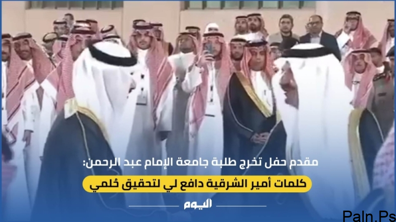 ريان الشمري؛ أعرب الطالب ريان الشمري خريج كلية الدراسات التطبيقية وخدمة المجتمع بجامعة الإمام عبدالرحمن بن فيصل عن سعادته بمصافحة صاحب السمو الملكي الأمير سعود بن نايف بن عبدالعزيز آل سعود أمير المنطقة الشرقية، بعد أن ألقى كلمة تعريفية بحفل التخرج الخامس والأربعين للجامعة بحضور رئيس الجامعة. الأستاذ الدكتور عبدالله الربيش ونواب الجامعة والضيوف.