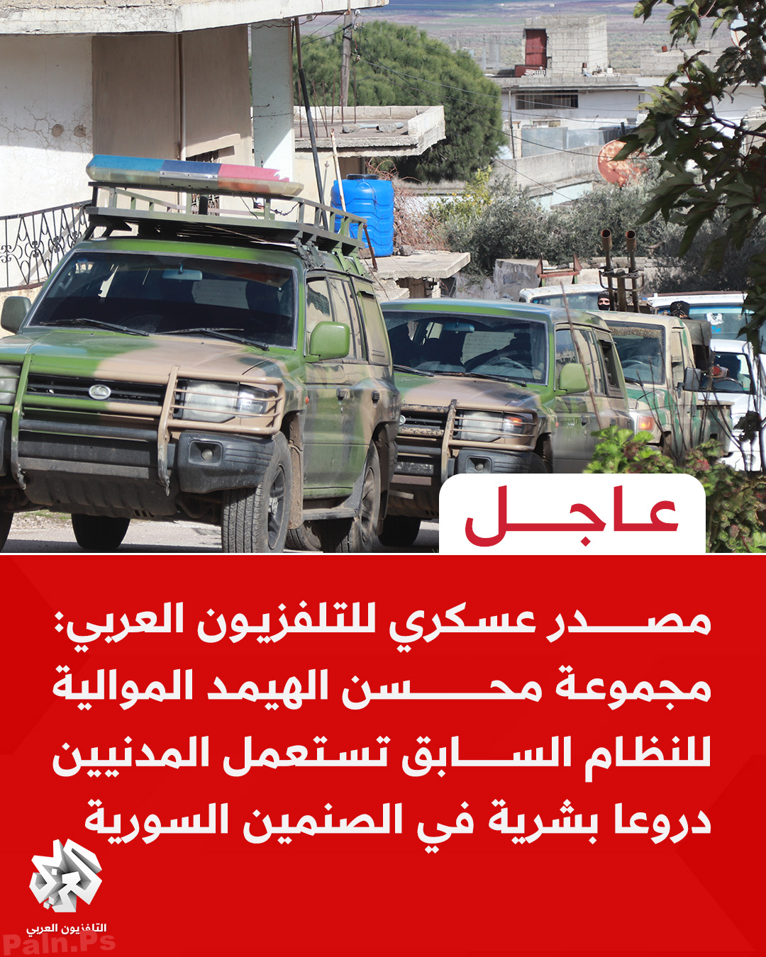 مجموعة محسن الهيمد الموالية للنظام السابق تستعمل المدنيين دروعا بشرية في الصنمين السورية